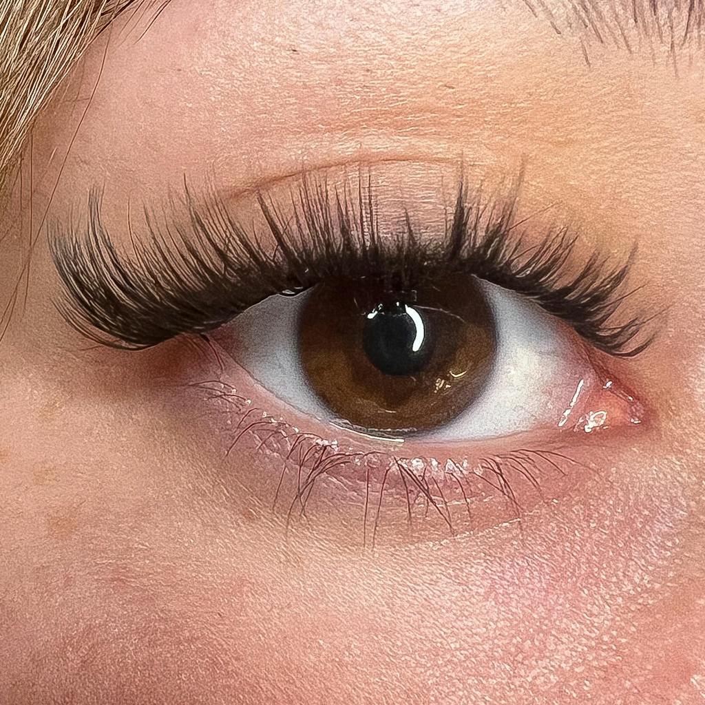 Wimpern gepaart mit vollständig hypoallergener Verbindung und Versiegelung – also keine Dämpfe, kein Brennen, keine Rötungen.